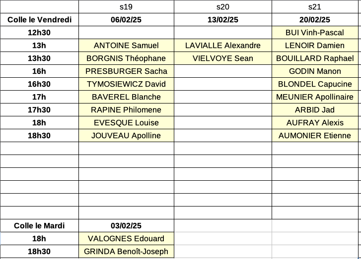 Nouveaux groupes de colles à partir du 02/02. Suppression du groupe 14.