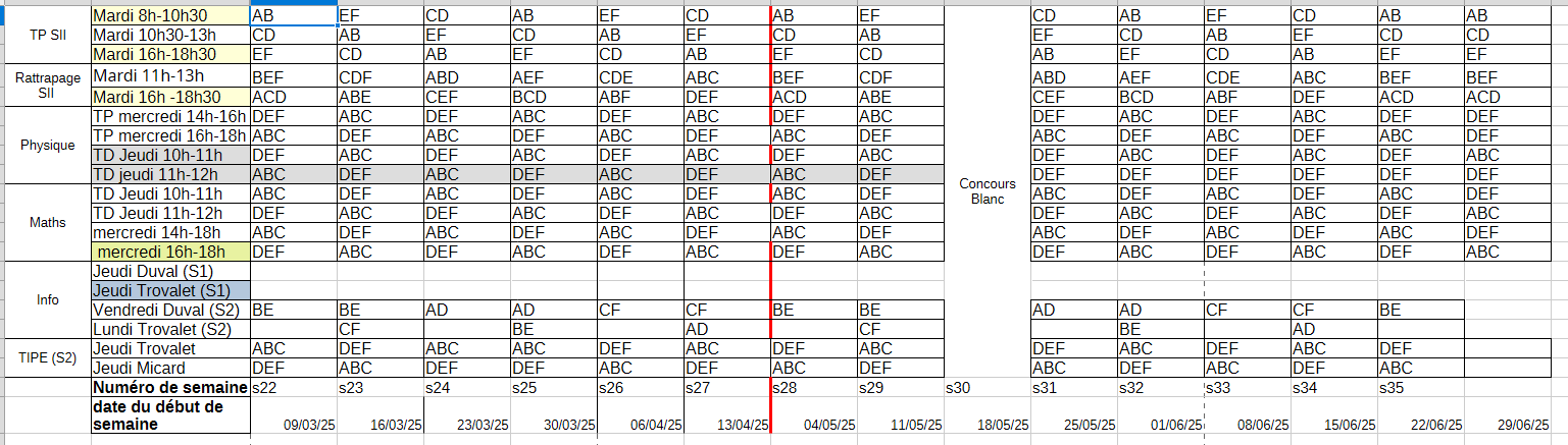 La semaine suivante, on fera des colles en séries (Pensez bien à décaler les colles du lundi de Pâques)